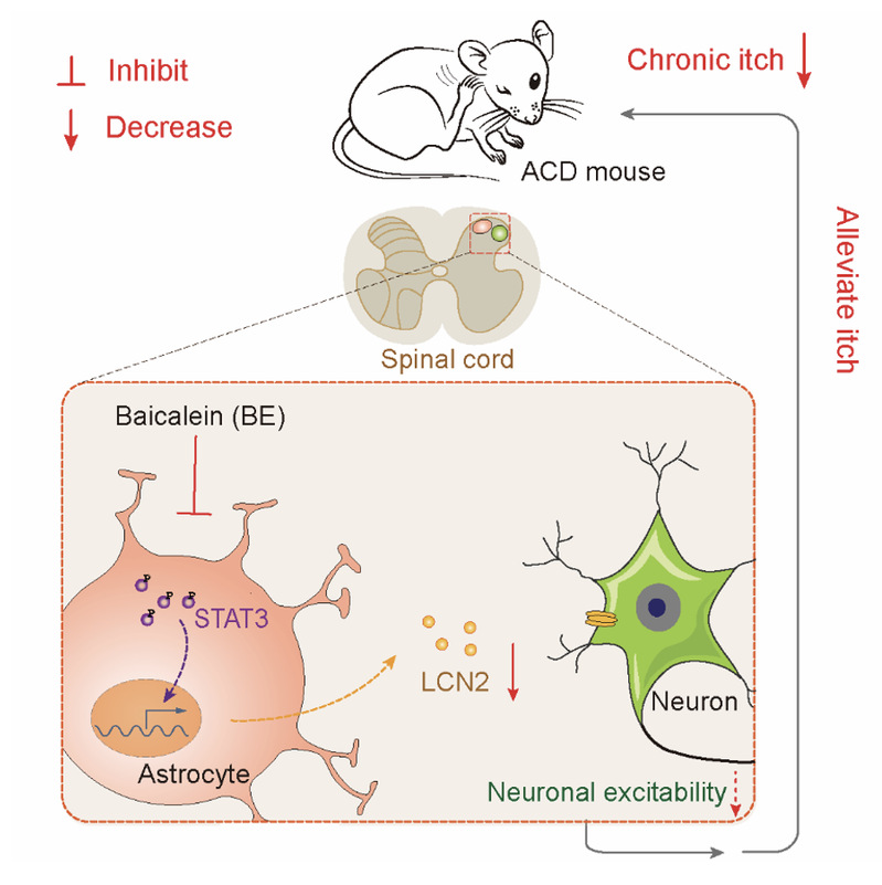我院王志菲团队揭示黄芩素治疗慢性痒的作用机制