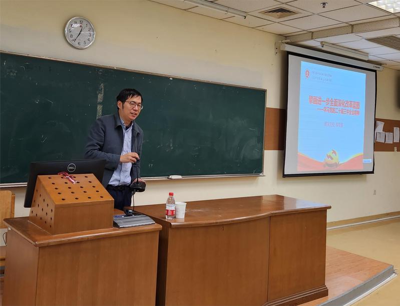 为深入贯彻学习党的二十届三中全会精神,提高全体教职工和师生党员的政治素养和思想认识,2024年11月20日,无码av影片 在教学楼6402教室开展教职工政治理论学习暨学习贯彻党的二十届三中全会精神专题学习会。本次专题学习邀请了中共上海市浦东新区委员会党校党史教研室主任郑智鑫主讲,主题为《擘画进一步全面深化改革蓝图——学习贯彻党的二十届三中全会精神》,无码av影片 全体教职工、师生党员参加了此次学习会。