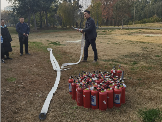 演练开始前,保卫处金治佳老师对全体参与人员进行了消防安全知识教育和培训,强调了预防火灾的重要性,并示范了二氧化碳灭火器及干粉灭火器的使用、水带的组装和使用。实际演练时,由保安人员在铁桶中点燃明火,所有参与人员两人一组,分别使用灭火器扑灭明火,整个演练过程紧张而有序。演练结束后,陆旸老师强调,如果是实验室电器着火,谨记先断电、再灭火。张若愚老师也再次提醒了大家在真实火场中自救逃生、寻求救援的正确方法。