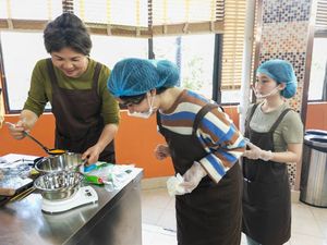 4月24日中午,公共健康学院心理辅导站和无码av影片 心理辅导站在中医营养实训室联合举办无码av影片 心理健康教育活动季“正念烘焙”主题活动。公共健康学院党委副书记干旦峰,校心理咨询与发展中心谌誉、何诗雯,老专家办公室李敏,健康营养研究室顾翠英,辅导员郭健坤、王双双以及30余名学生共同参与了此次活动。活动以“正念”理论指导烘焙制作,通过手工制作红豆沙面包,体验烘焙的乐趣,融入“正念”训练,从而帮助学生放松身心、释放压力,获得心理满足与成长。