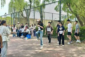 团体项目更是将运动会的气氛推向了高潮。同学们在“风火轮”中团结协作,双手保持着平衡,脚步快速而有节奏地交替移动,推动着风火轮不断前进;在“齐心协力”项目中,大家步伐一致,喊着整齐的口号:“左右,左右……”,向着终点迈进。每个团队项目都展现出高度的团结协作精神——心往一处想,劲往一处使,为了共同的目标而努力。
