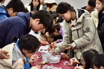 一旁的“锦簇手铸如意春”摊位则摆满各式干花,大家亲手搭配、捆扎,一束束年宵花传递出吉祥如意的美好寓意。
